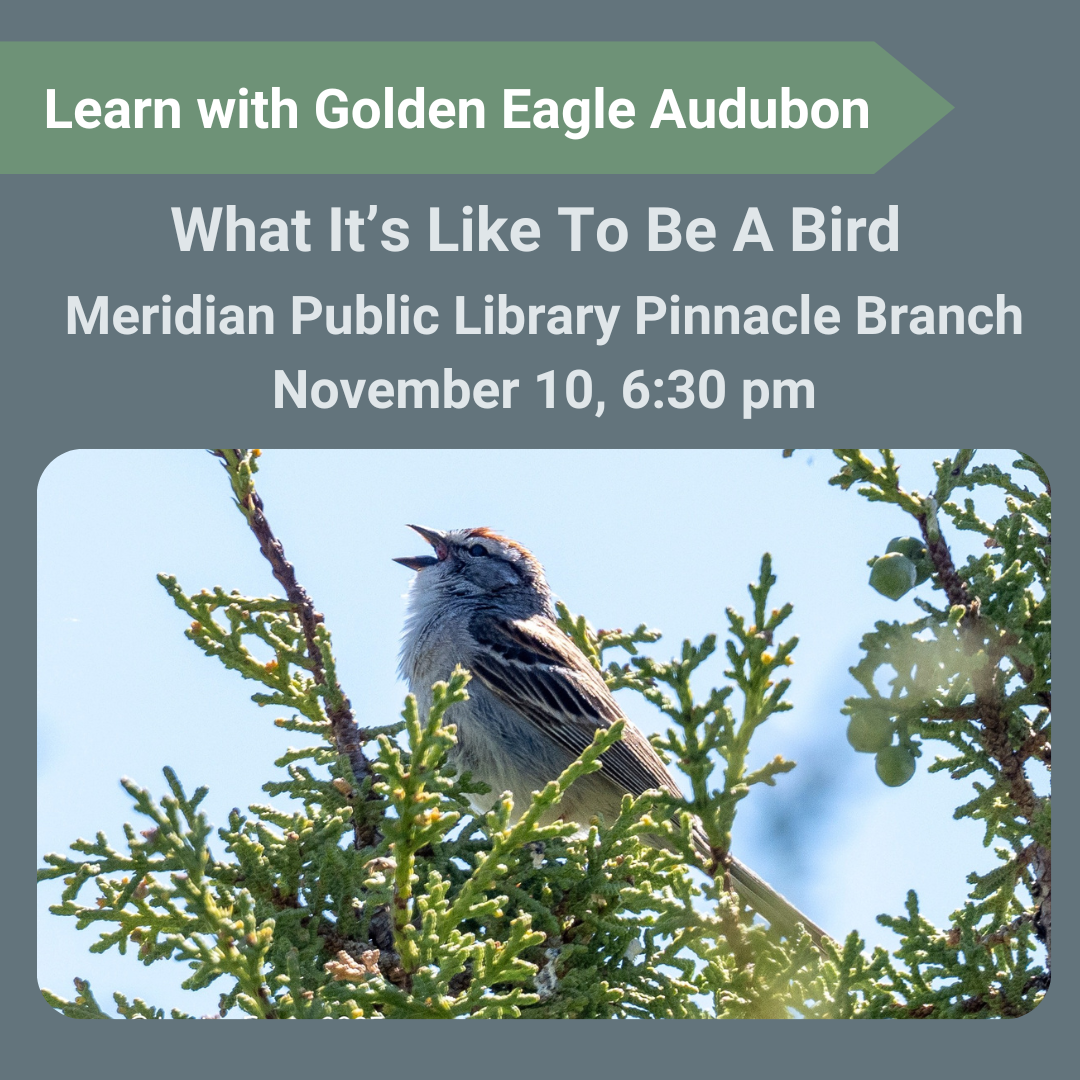 This class is taught by Golden Eagle Audubon volunteers. It’s free and everyone is welcome. Registration is not required.