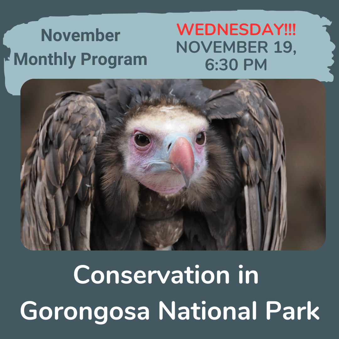 Join Zoo Boise’s Director of Education, Tierney Ball, for an inside look at one of Africa’s most inspiring conservation success stories. This program will explore Gorongosa National Park in Mozambique, where Zoo Boise plays a key role in supporting community-based conservation, habitat restoration, and wildlife protection. Tierney will share stories and highlights from her recent trip, including an introduction to some of the incredible wildlife found in the park and surrounding areas. From vibrant bee-eaters to majestic elephants, discover how protecting birds and other wildlife in Gorongosa is helping safeguard an entire ecosystem.