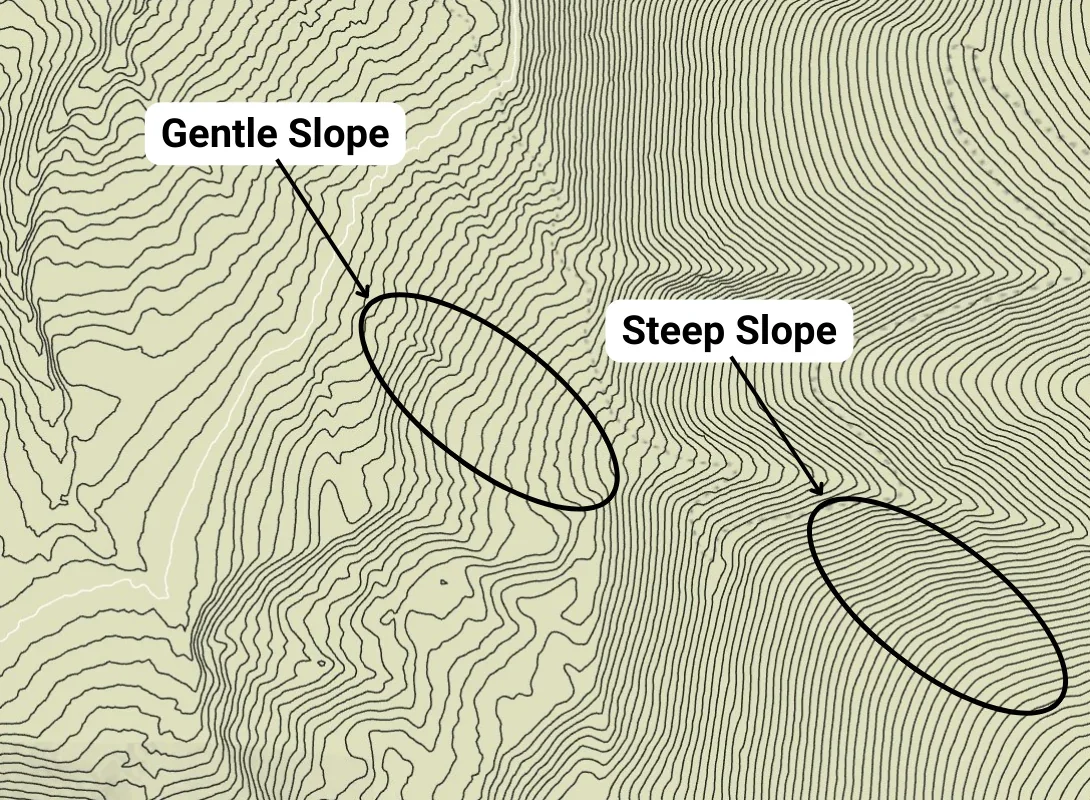 Topography refers to how steep the slope is and what aspect a given slope faces. Generally, the steeper the slope, the faster the fire can spread. A fire located at the bottom of a slope can spread faster than one at the top of a slope. Aspect governs how dry the fuels are given the slope steepness, the time of year, and the type of year, but is mostly a factor in mountainous terrain. Because we are in the northern hemisphere, south- and west-facing aspects receive more sun overall and more afternoon sun when conditions are hotter, so tend to be drier. North- and east-facing aspects tend to be wetter as they receive less sun and more sun in the morning when conditions are cooler.