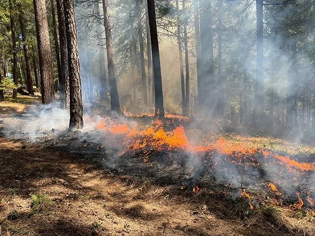 Figure 1. Low severity fire burns needles, grass, and some understory vegetation with low flame lengths.