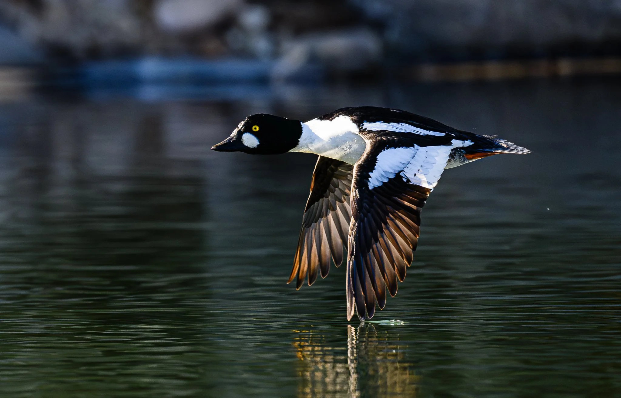 Common Goldeneye (Bucephala clangula) and Barrow’s Goldeneye (Bucephala islandica) are medium-size diving ducks. Some traits are shared between the species, but some behavior, how they look and their range set them apart from each other. To state the obvious, all adults have a brilliant golden eye that can be readily seen, even at some distance. In flight, their wings make a distinct whistling sound.
